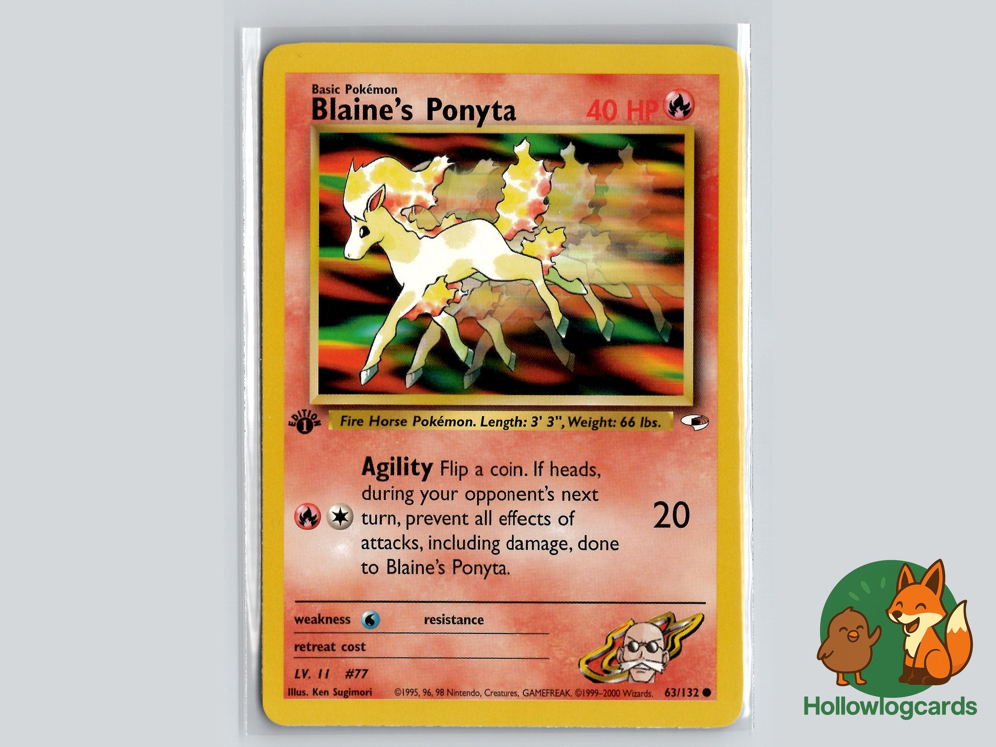 Pokemon card: 1st Edition - Blaine's Ponyta - Gym Challenge 63/132 - WOTC - - Sugimori. Great for collectors and fans. See photo for condition.