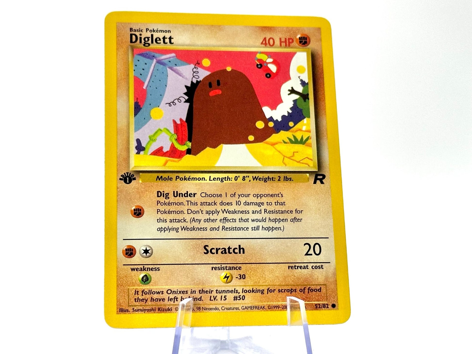 1st Edition from the Diglett set. This card is from the Team Rocket [52/82] era. Carefully protected during shipping. Authentic Pokémon card. Please check photos for condition.