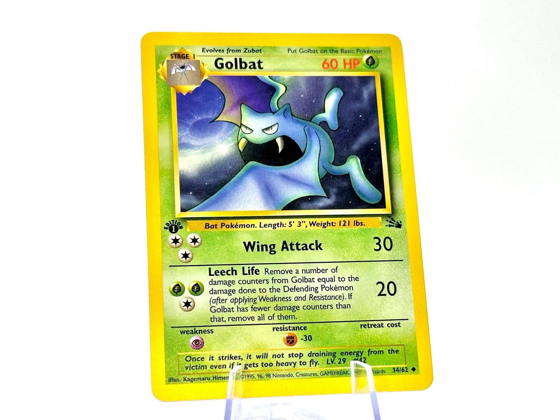 1st Edition from the Golbat set. This card is from the Fossil [34/62] era. Carefully protected during shipping. Authentic Pokémon card. Please check photos for condition.