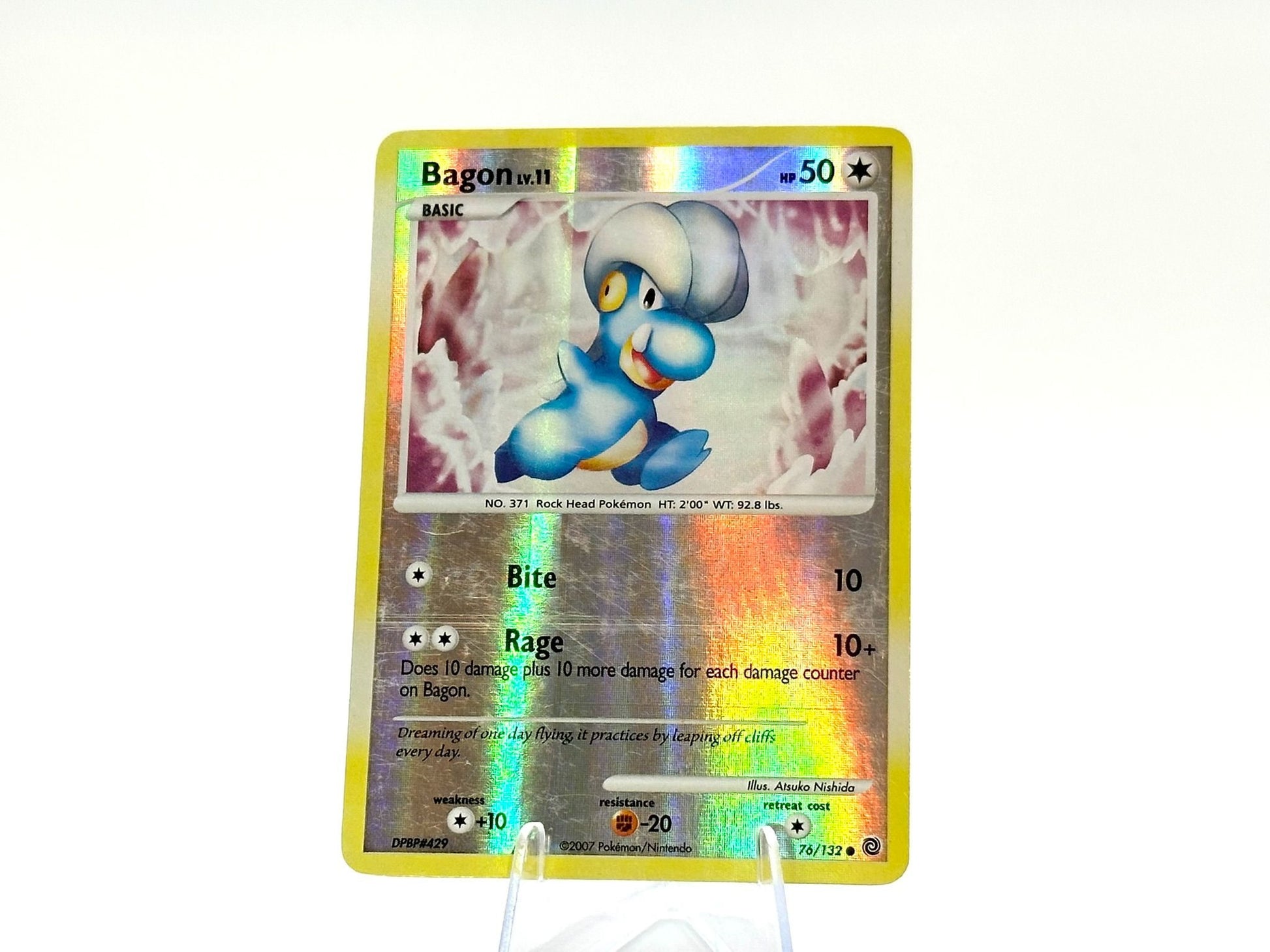 Bagon from the HOLO Secret Wonders [76/132] set. This card is from the 2007 MidEra era. Carefully protected during shipping. Authentic Pokémon card. Please check photos for condition.
