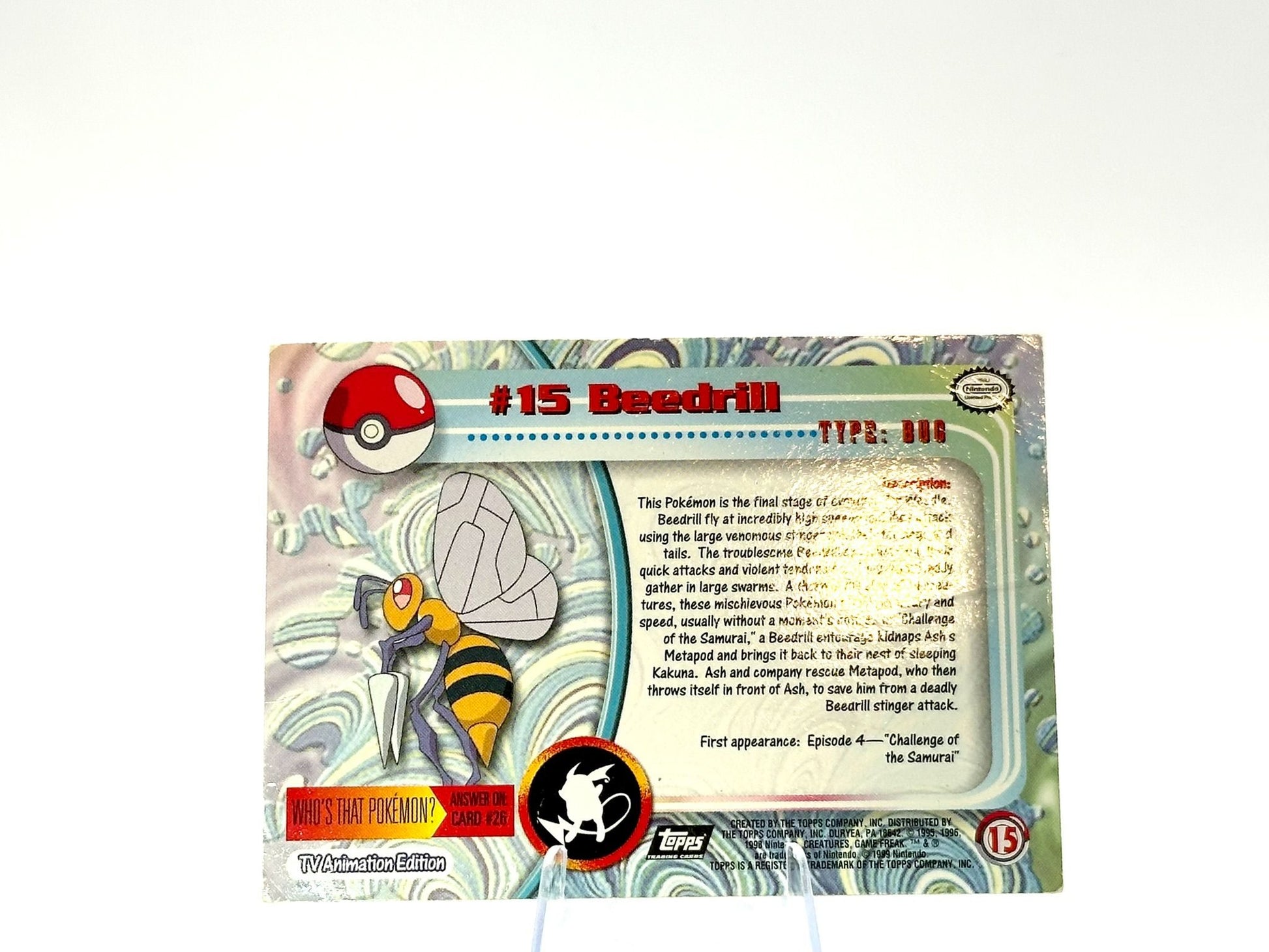 Beedrill from the CHROME HOLO [15] set. This card is from the Topps era. Carefully protected during shipping. Authentic Pokémon card. Please check photos for condition.
