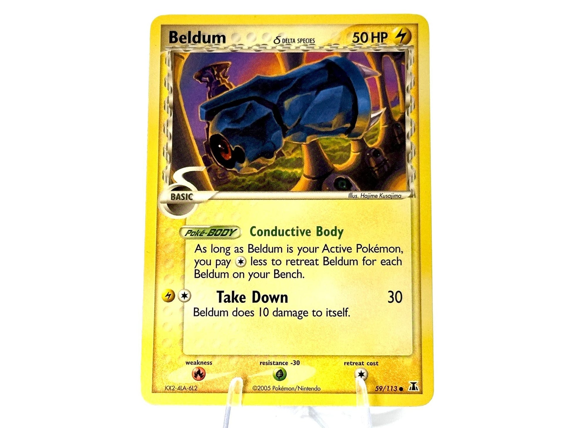 Beldum from the EX Delta Species [59/113] set. This card is from the 2005 MidEra era. Carefully protected during shipping. Authentic Pokémon card. Please check photos for condition.