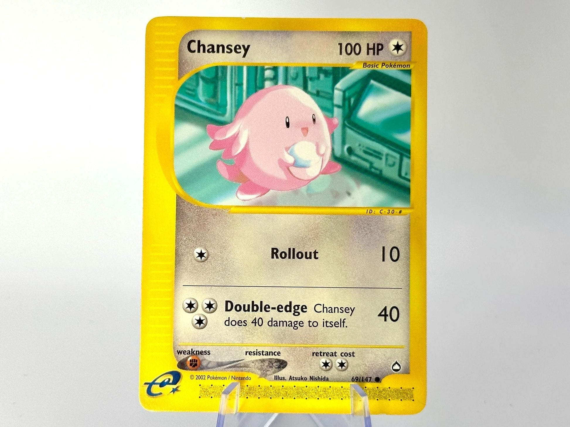 Chansey from the Aquapolis [69/147] set. This card is from the 2003 WOTC era. Carefully protected during shipping. Authentic Pokémon card. Please check photos for condition.