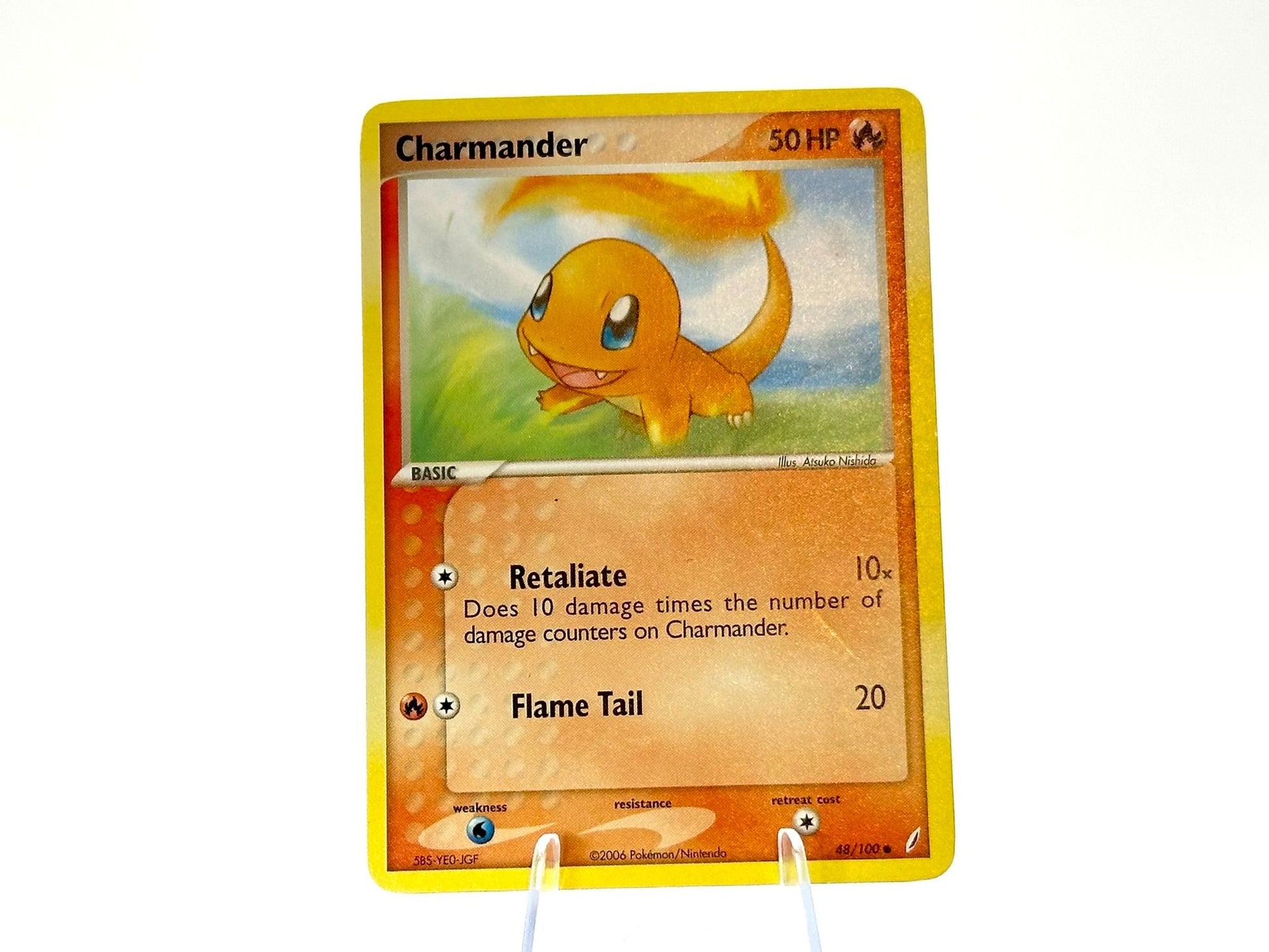Charmander from the EX Crystal Guardians [48/100] set. This card is from the 2006 MidEra era. Carefully protected during shipping. Authentic Pokémon card. Please check photos for condition.