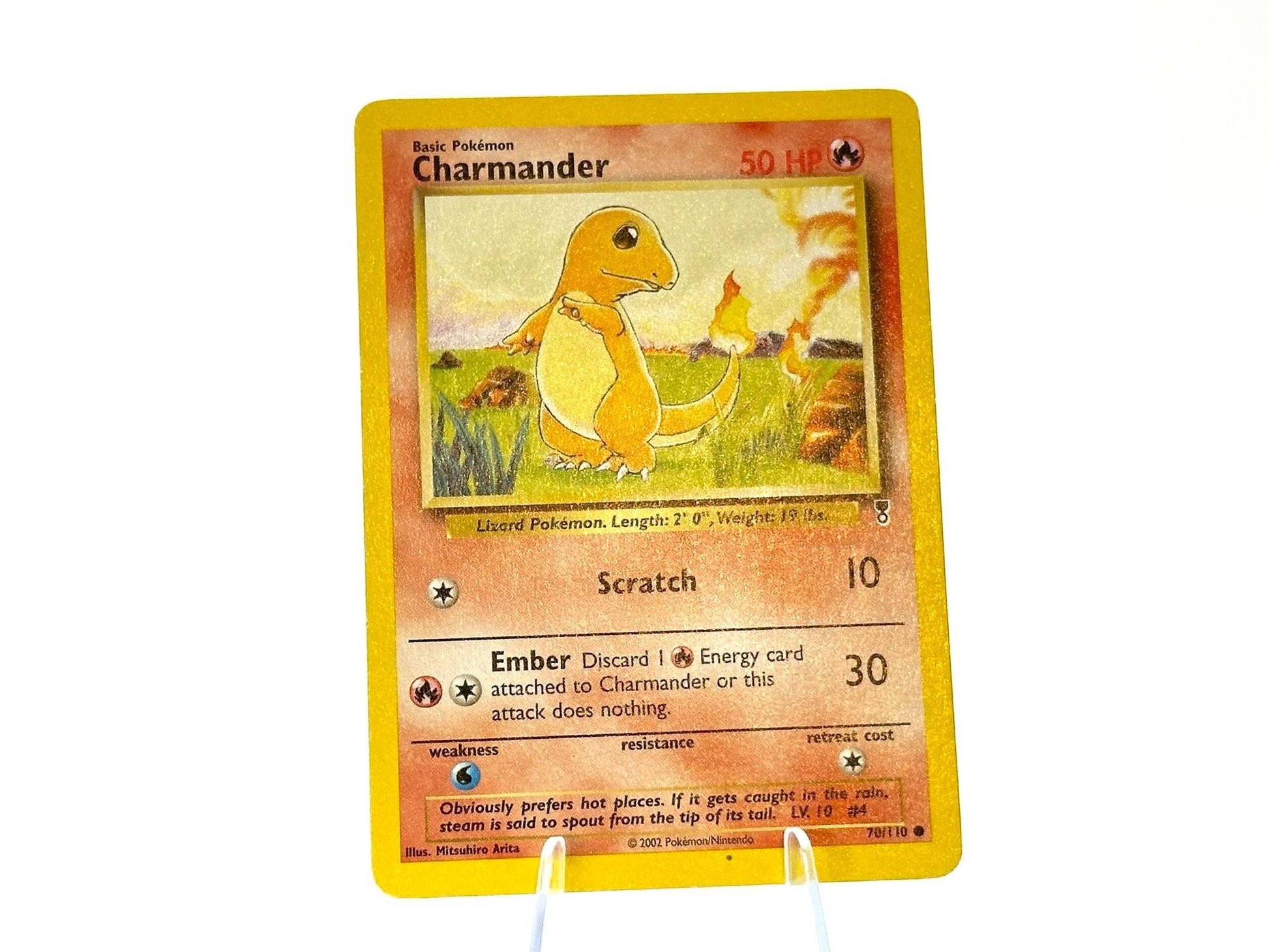 Charmander from the Legendary Collection [70/110] set. This card is from the 2002 MidEra era. Carefully protected during shipping. Authentic Pokémon card. Please check photos for condition.
