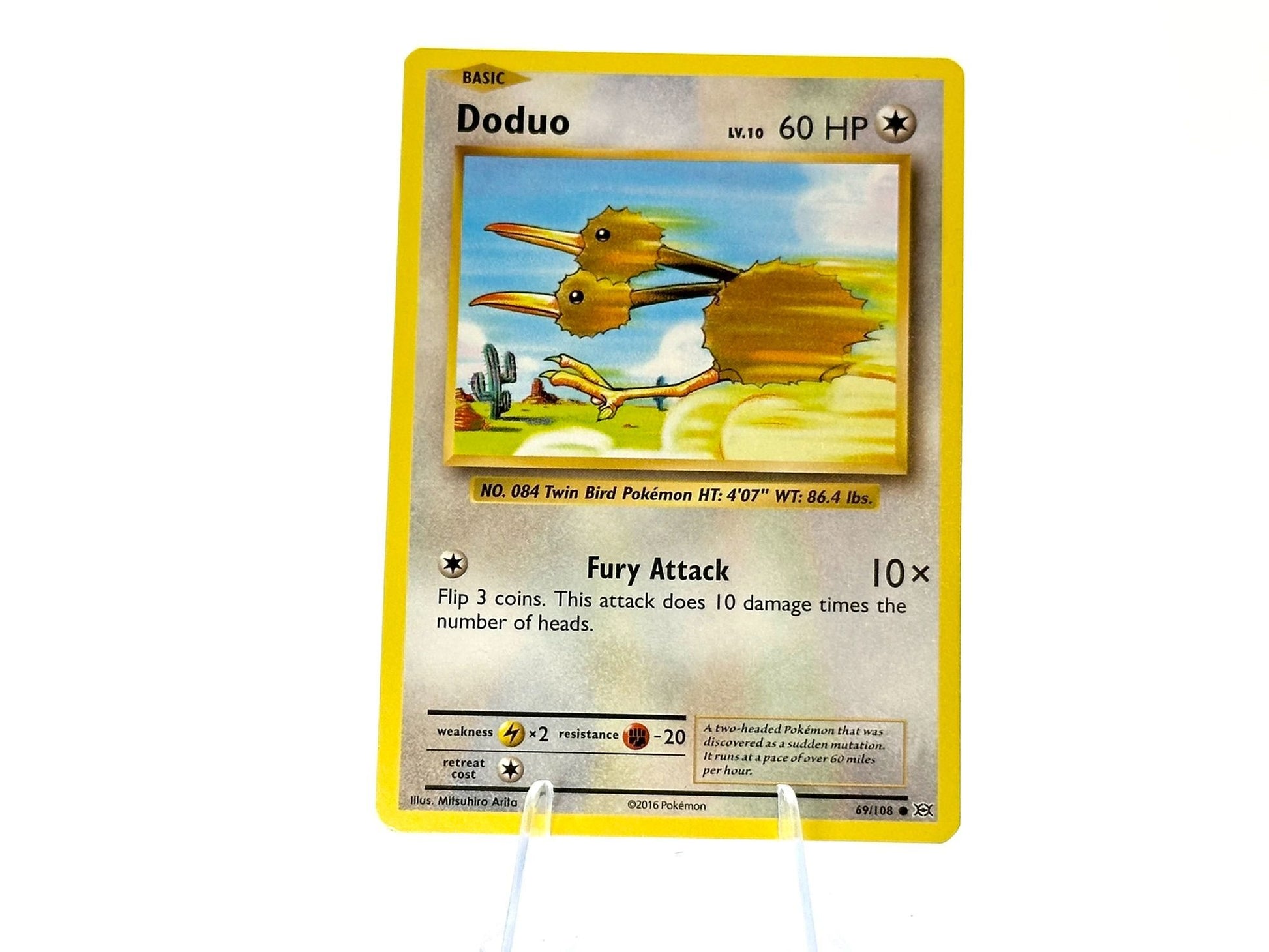 Doduo from the Evolutions [69/108] set. This card is from the 2016 Modern era. Carefully protected during shipping. Authentic Pokémon card. Please check photos for condition.