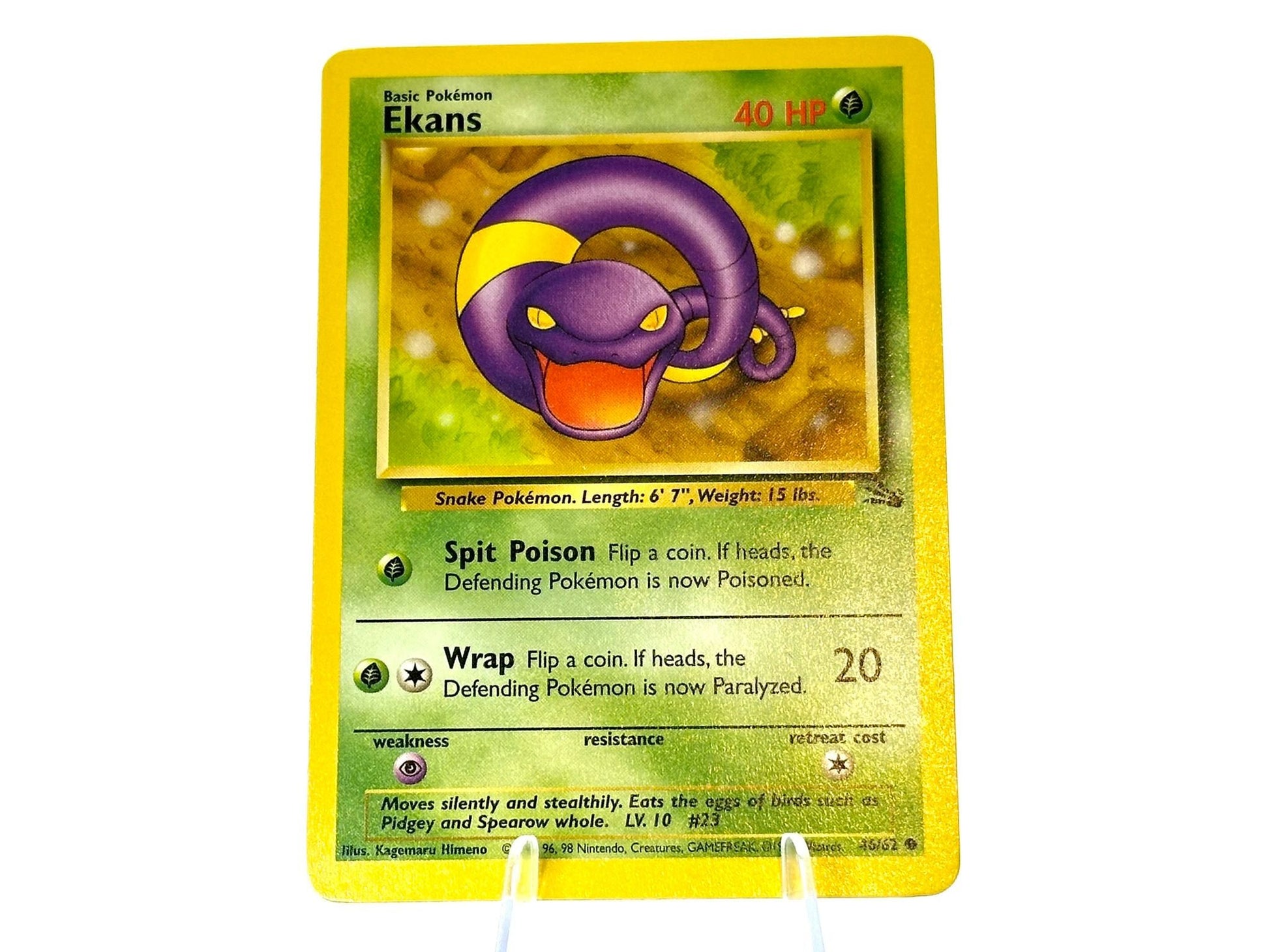 Ekans from the Fossil [46/62] set. This card is from the 1999 WOTC era. Carefully protected during shipping. Authentic Pokémon card. Please check photos for condition.