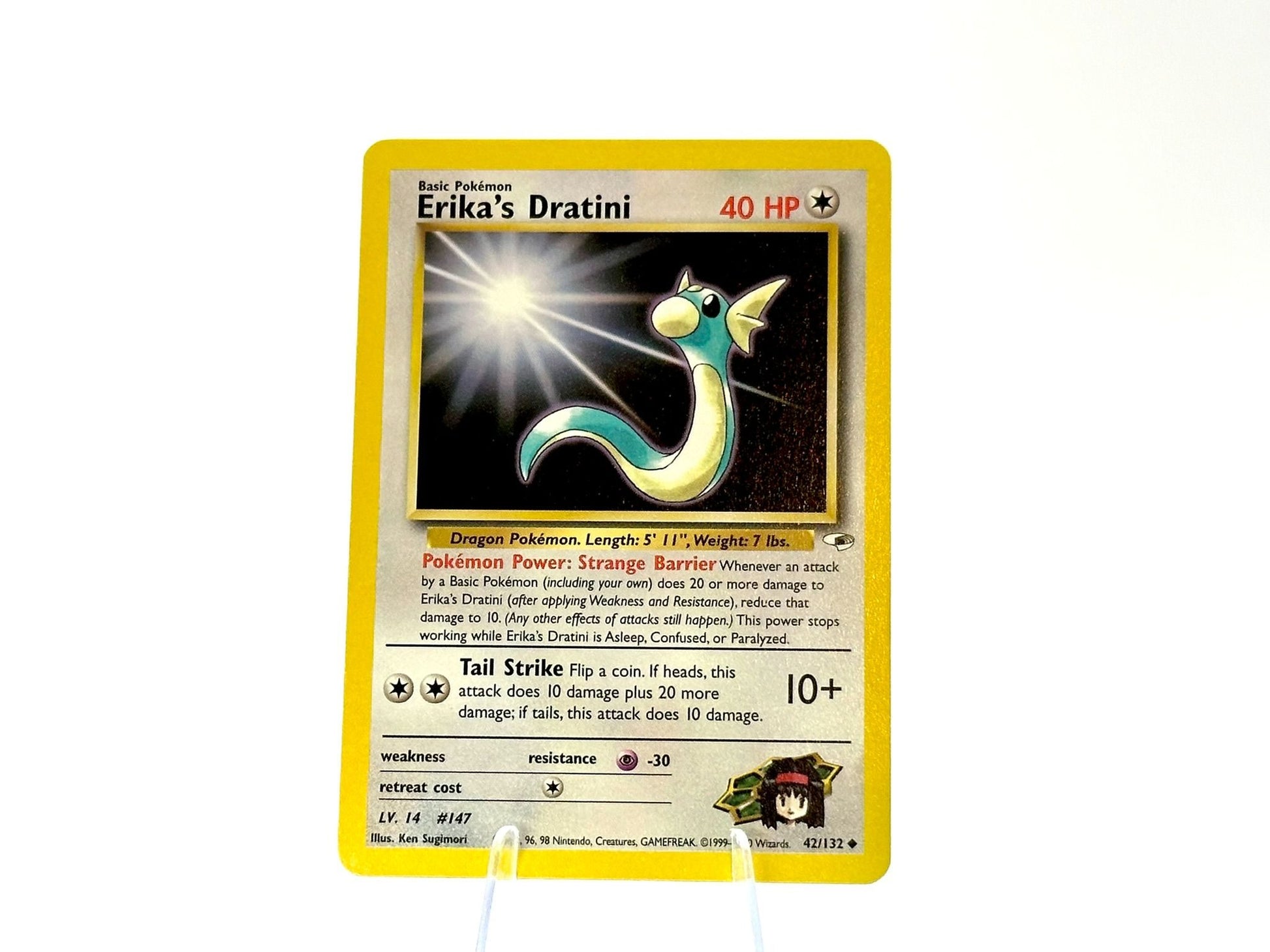 Erika’s Dratini from the Gym Challenge / Heroes [42/132] set. This card is from the 2000 WOTC era. Carefully protected during shipping. Authentic Pokémon card. Please check photos for condition.