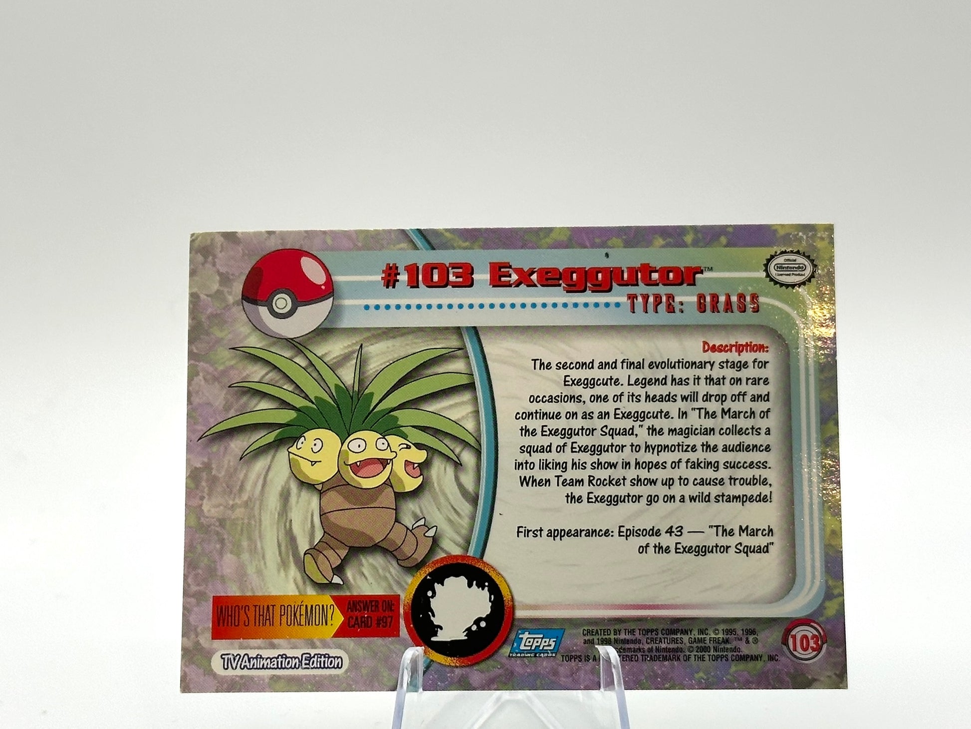 Exeggutor from the [103] set. This card is from the Topps era. Carefully protected during shipping. Authentic Pokémon card. Please check photos for condition.