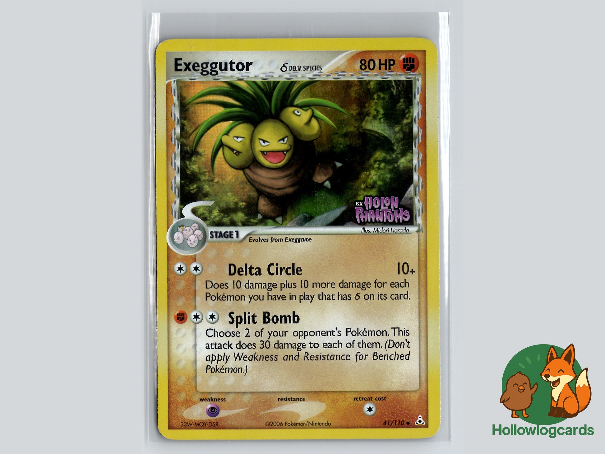 Exeggutor from the HOLO STAMPED EX Holon Phantoms 41/110 set. This card is from the MidEra era. Carefully protected during shipping. Authentic Pokémon card. Please check photos for condition.