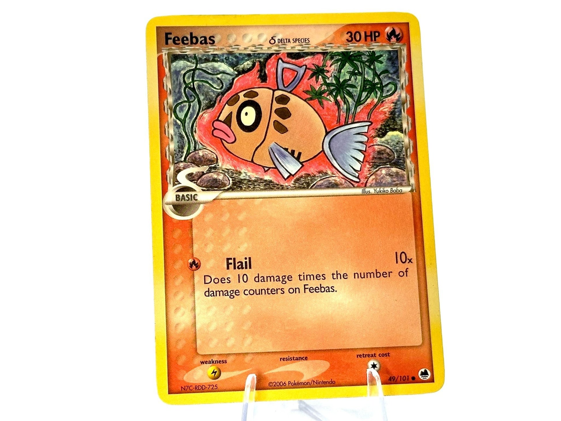 Feebas from the EX Dragon Frontiers [49/101] set. This card is from the 2006 MidEra era. Carefully protected during shipping. Authentic Pokémon card. Please check photos for condition.