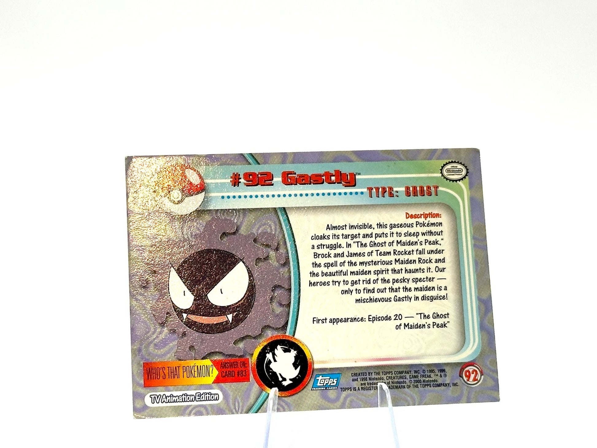 Gastley from the [92] set. This card is from the Topps era. Carefully protected during shipping. Authentic Pokémon card. Please check photos for condition.