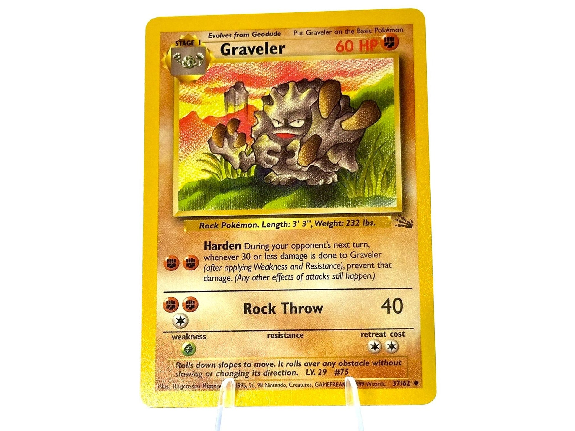 Graveler from the Fossil [37/62] set. This card is from the 1999 WOTC era. Carefully protected during shipping. Authentic Pokémon card. Please check photos for condition.