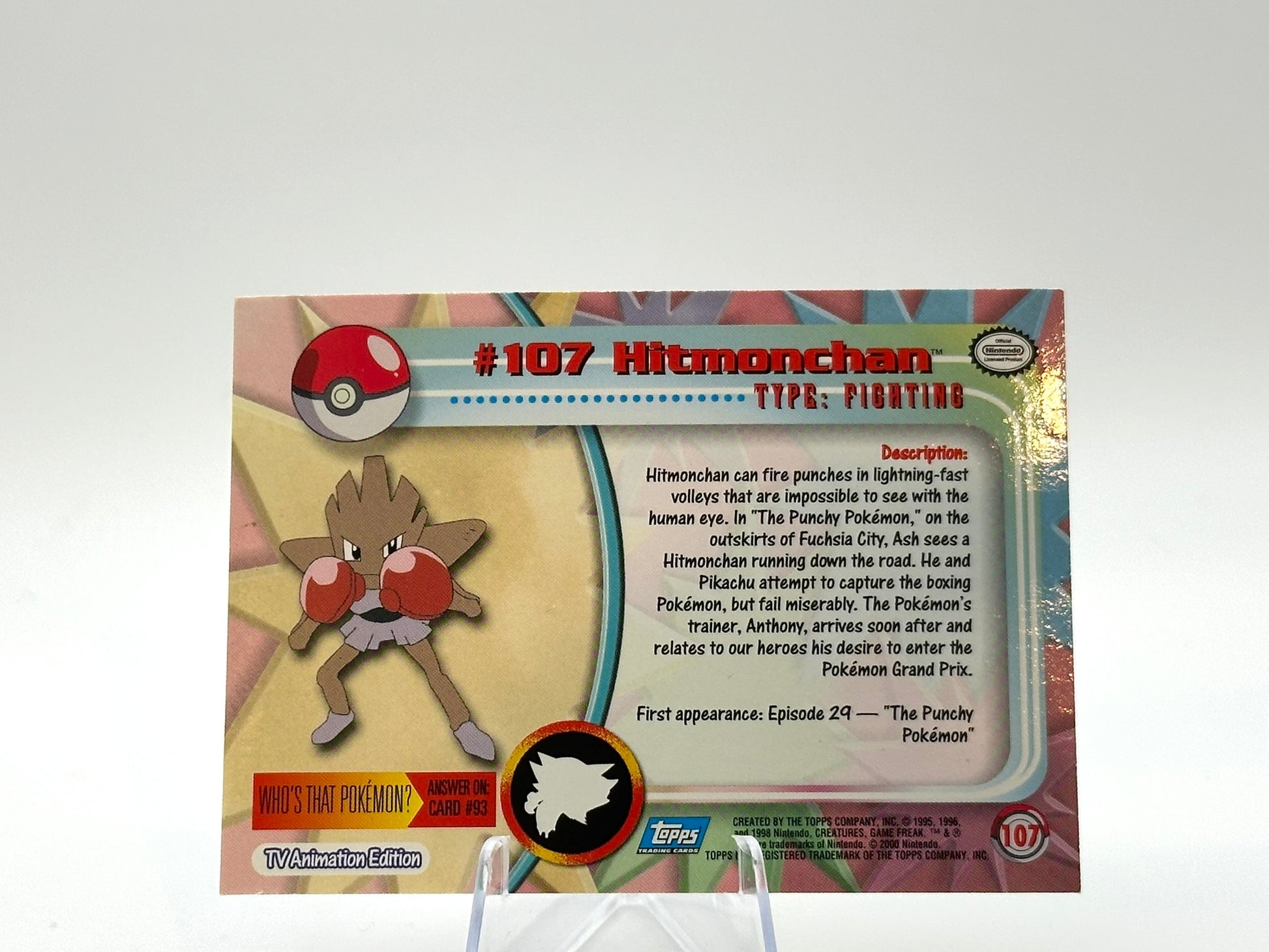 Hitmonchan from the [107] set. This card is from the Topps era. Carefully protected during shipping. Authentic Pokémon card. Please check photos for condition.