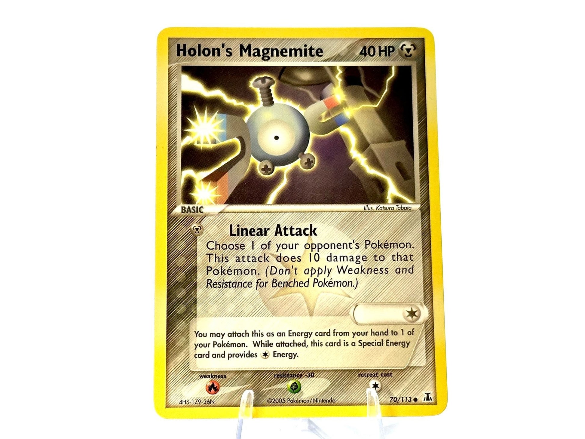 Holon Magnemite from the EX Delta Species [70/113] set. This card is from the 2005 MidEra era. Carefully protected during shipping. Authentic Pokémon card. Please check photos for condition.