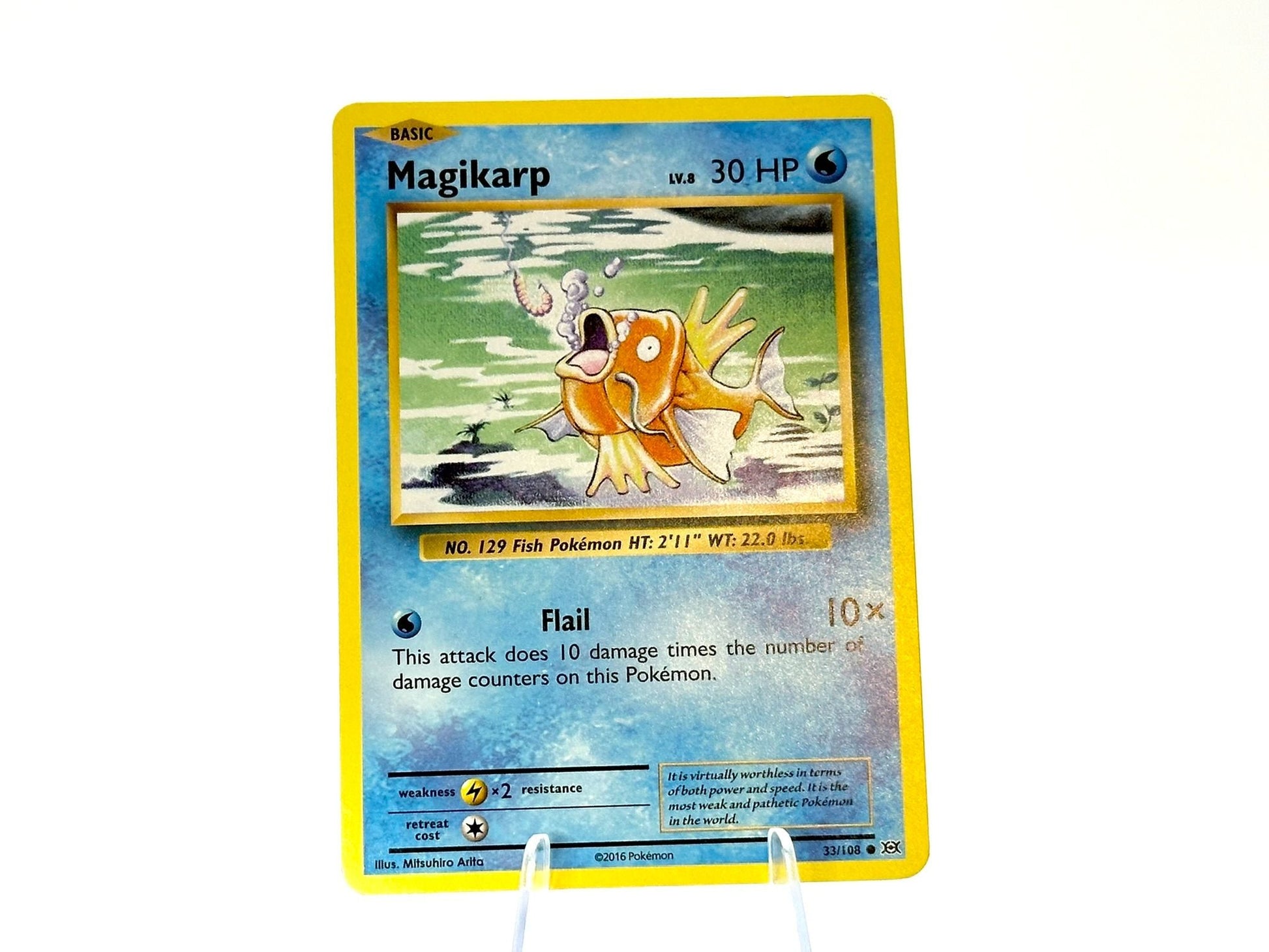 Magikarp from the Evolutions [33/108] set. This card is from the 2016 Modern era. Carefully protected during shipping. Authentic Pokémon card. Please check photos for condition.
