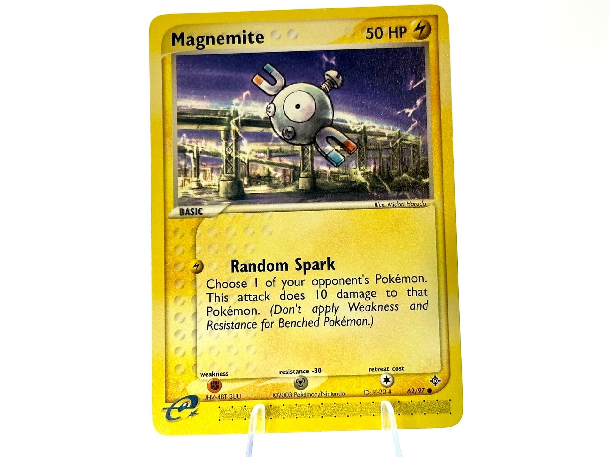 Magnemite from the EX Dragon [62/97] set. This card is from the 2003 MidEra era. Carefully protected during shipping. Authentic Pokémon card. Please check photos for condition.