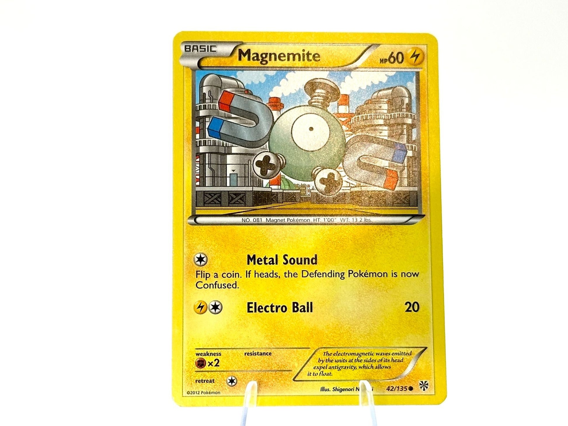 Magnemite from the Plasma Storm [42/135] set. This card is from the 2013 MidEra era. Carefully protected during shipping. Authentic Pokémon card. Please check photos for condition.