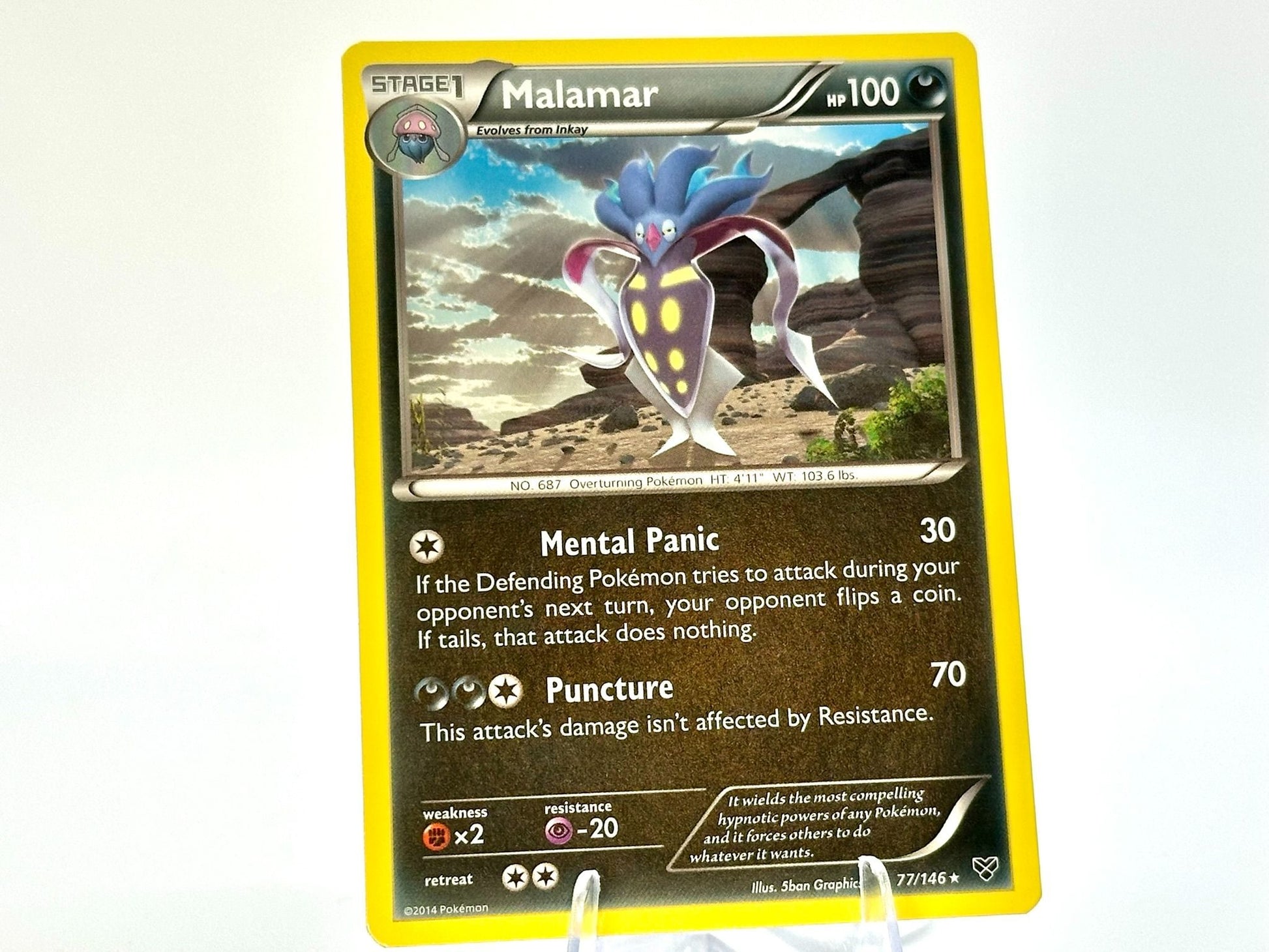 Malamar from the XY [77/146] set. This card is from the 2014 MidEra era. Carefully protected during shipping. Authentic Pokémon card. Please check photos for condition.