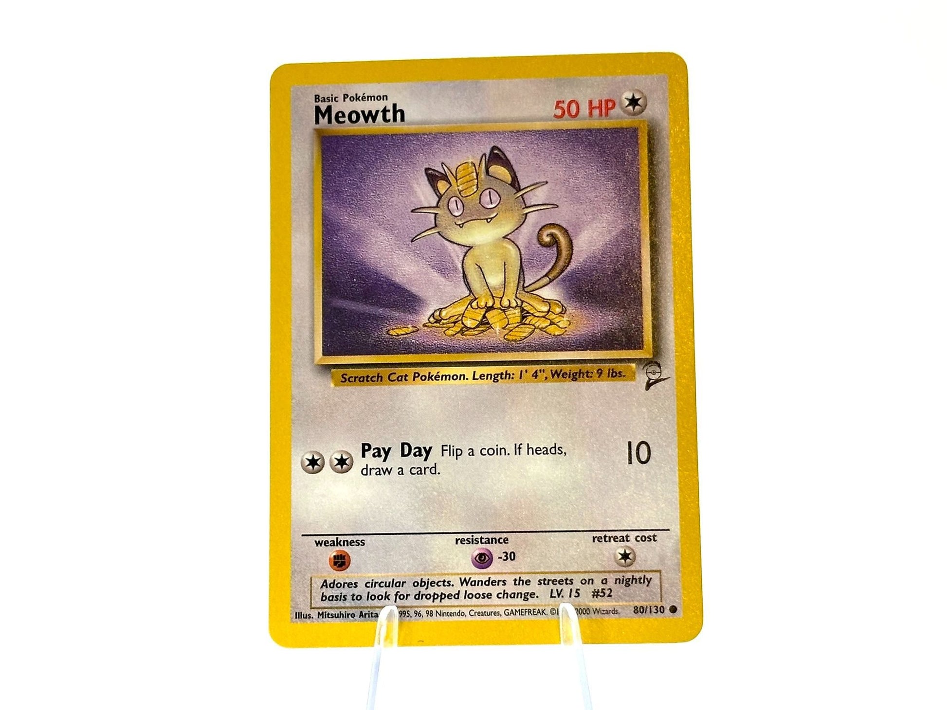 Meowth from the Base Set 2 [80/130] set. This card is from the 2000 WOTC era. Carefully protected during shipping. Authentic Pokémon card. Please check photos for condition.