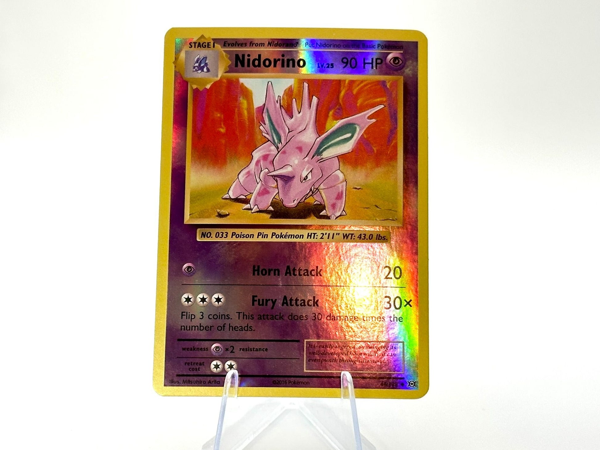 Nidorino from the Evolutions [41/108] set. This card is from the 2016 Modern era. Carefully protected during shipping. Authentic Pokémon card. Please check photos for condition.