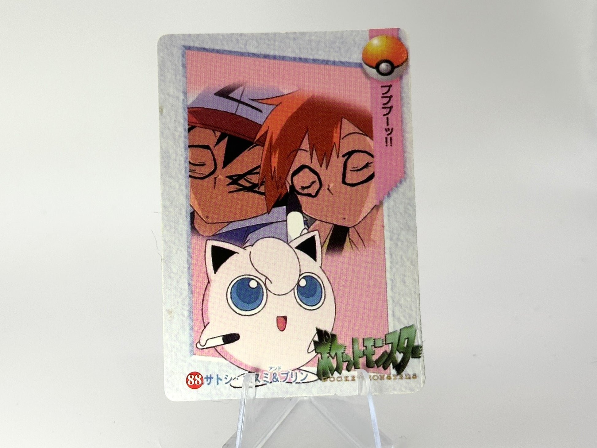Officer Jenny, Misty, Ash, Jigglypuff and Pikachu - Japanese Vending - Holo. Please note these are not the cardass cards but are a form of early japanese collector cards/stickers. Part of the bootleg "Pocket Monsters Anime Collection" often found in Japan in gachapon machines and local markets during the Pokémon boom.