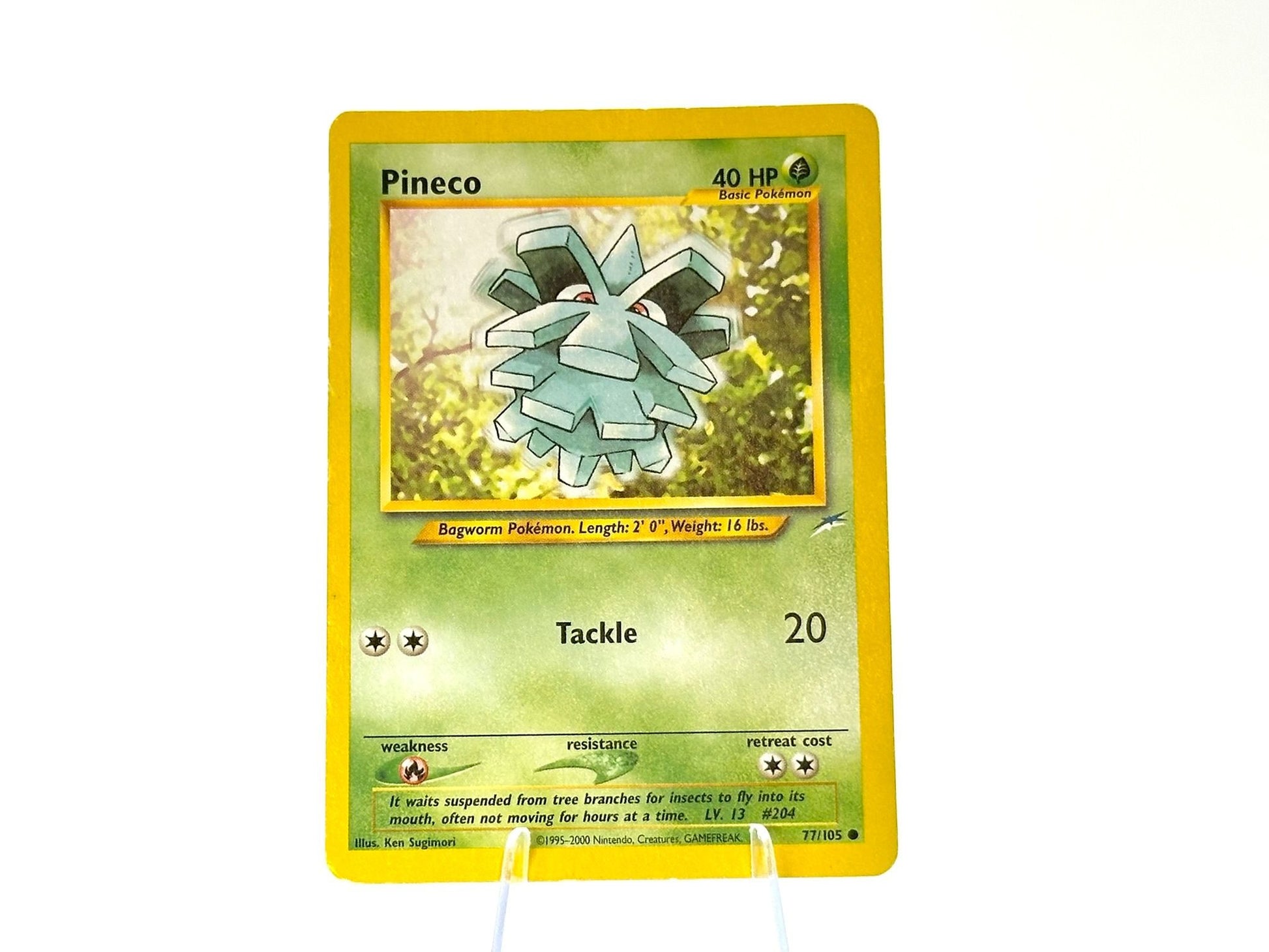 Pineco from the Neo Destiny [77/105] set. This card is from the 2002 WOTC era. Carefully protected during shipping. Authentic Pokémon card. Please check photos for condition.