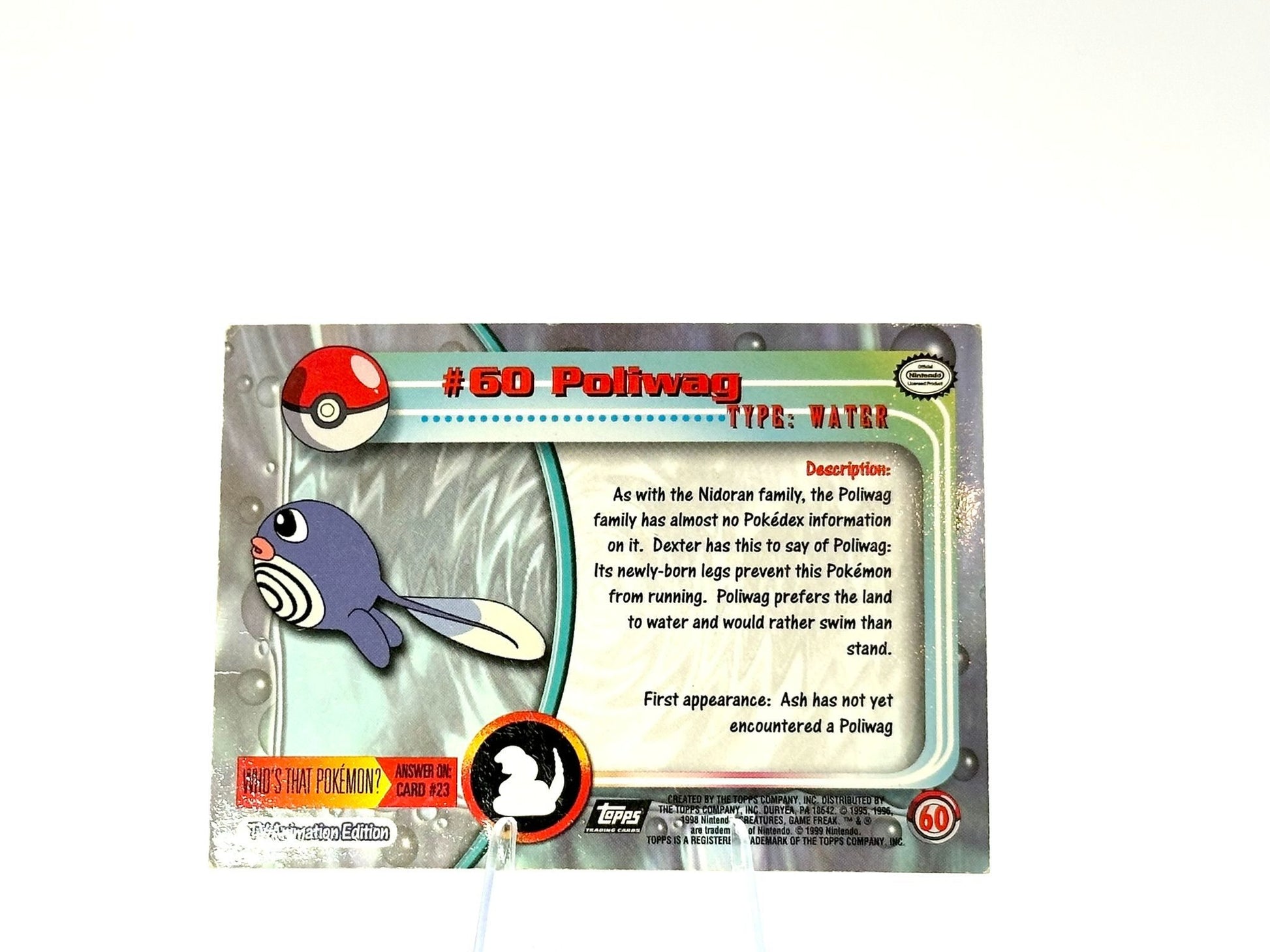 Poliwag from the [60] set. This card is from the Topps era. Carefully protected during shipping. Authentic Pokémon card. Please check photos for condition.