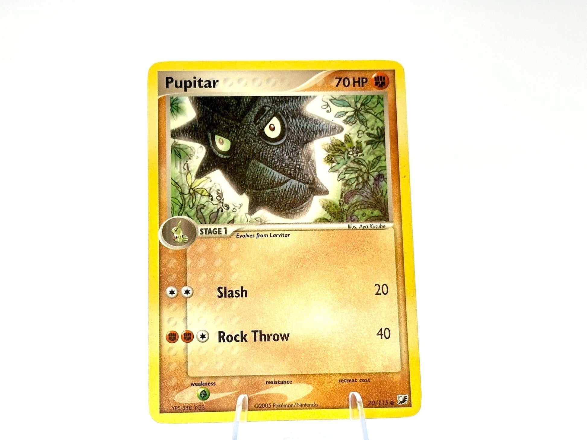Pupitar from the Unseen Forces [70/115] set. This card is from the 2005 MidEra era. Carefully protected during shipping. Authentic Pokémon card. Please check photos for condition.