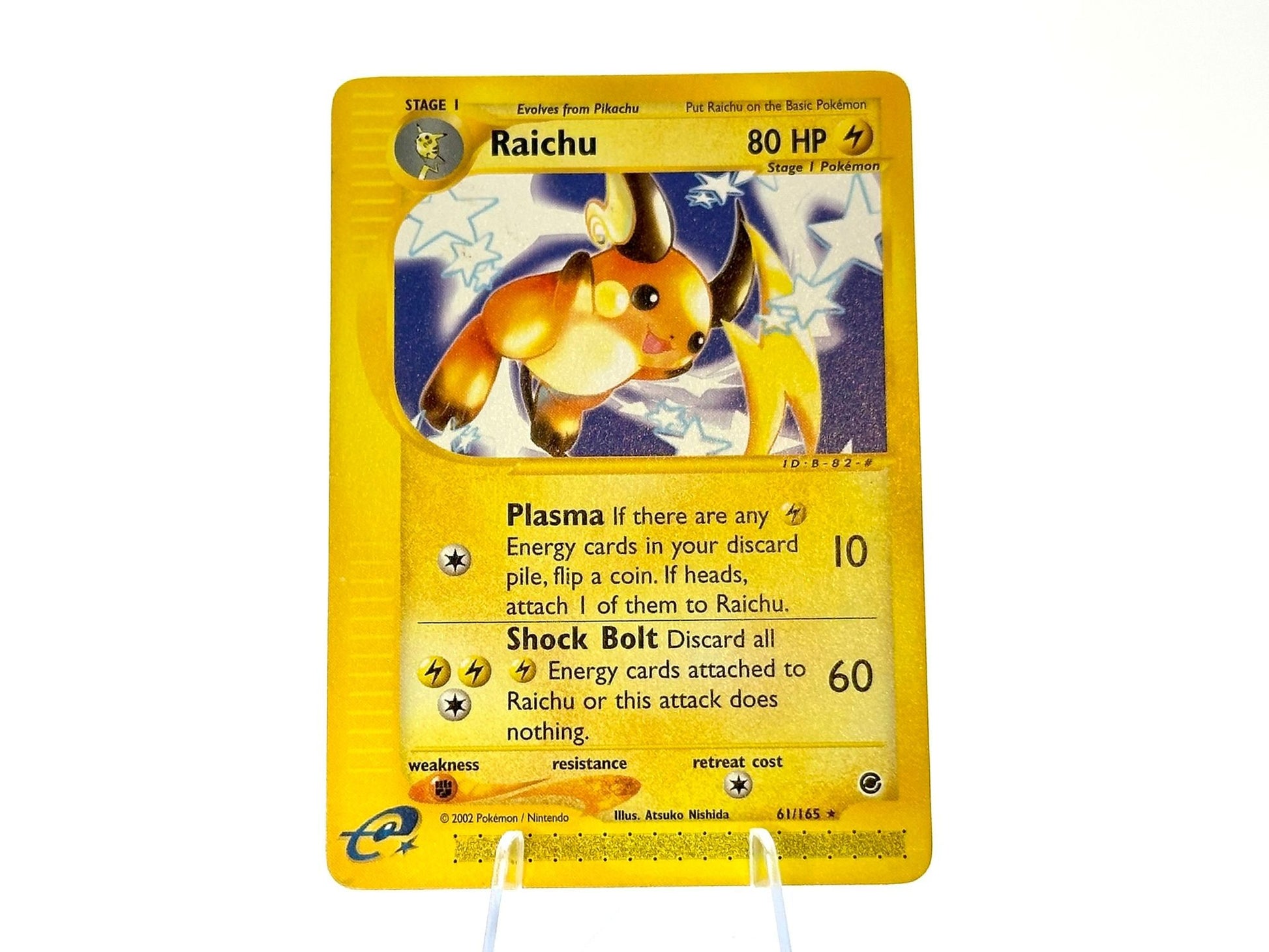 Raichu from the Expedition Base Set 61/165 set. This card is from the WOTC era. Carefully protected during shipping. Authentic Pokémon card. Please check photos for condition.