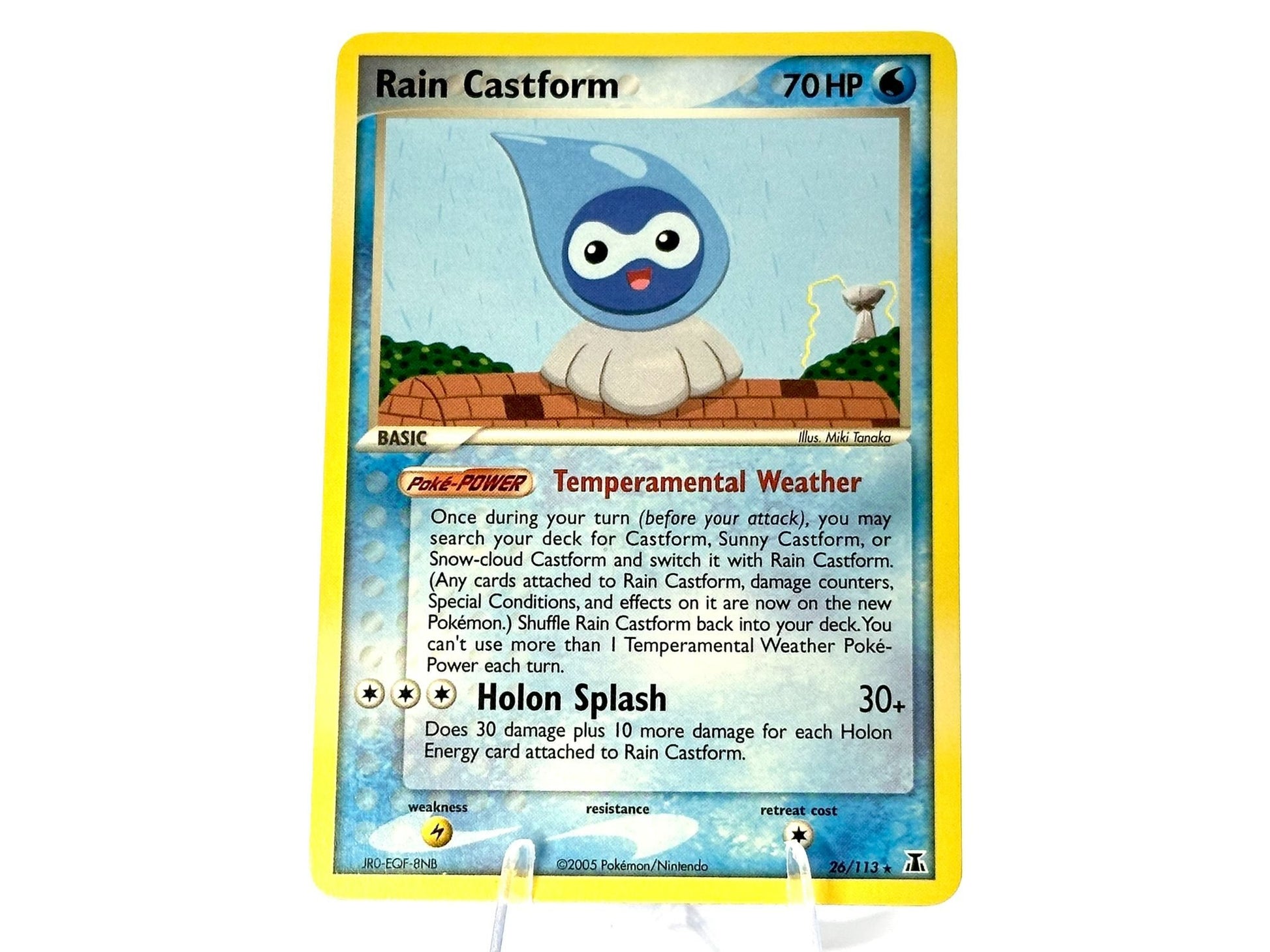 Rain Castform from the EX Delta Species [26/113] set. This card is from the 2005 MidEra era. Carefully protected during shipping. Authentic Pokémon card. Please check photos for condition.