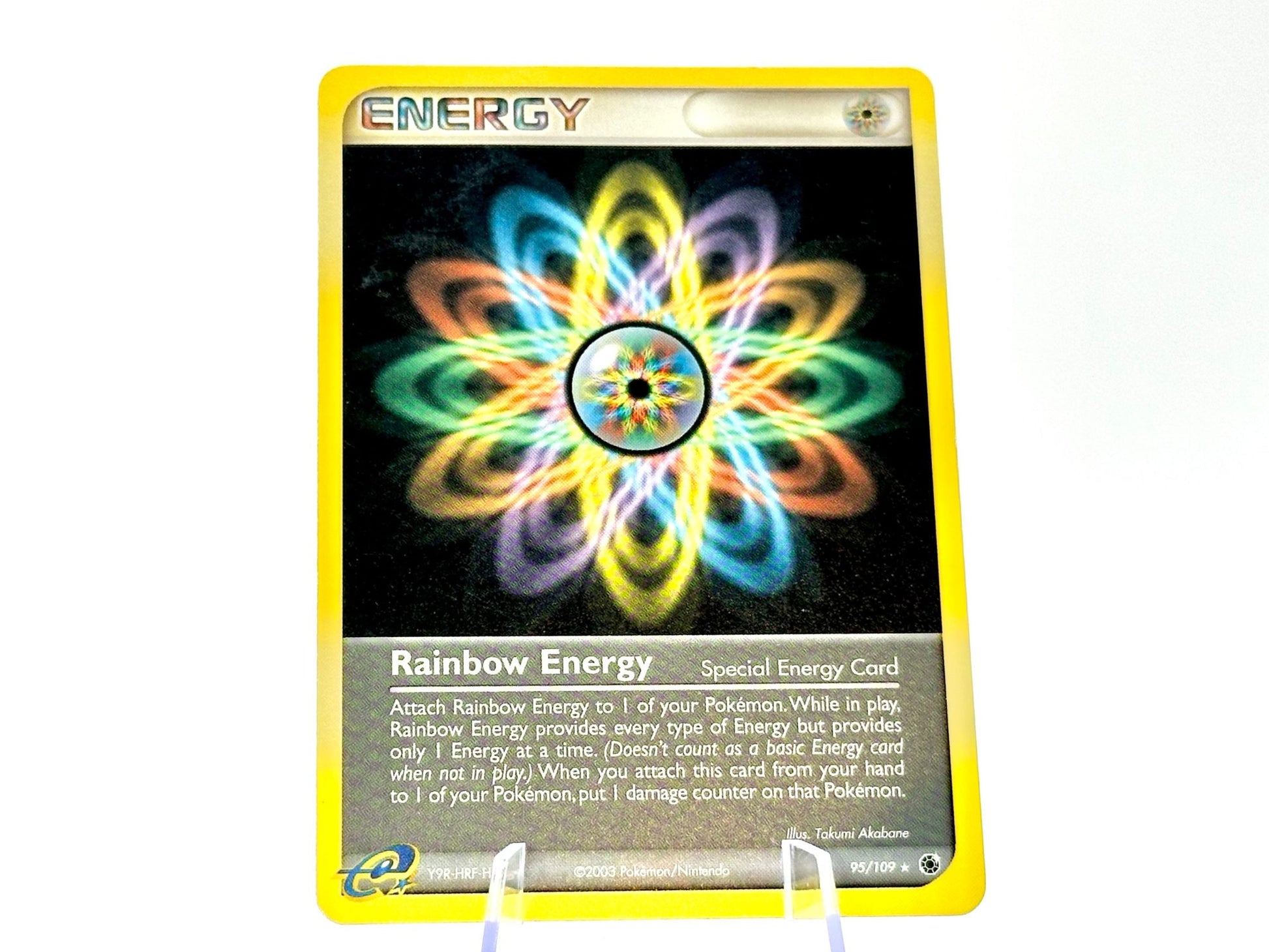 Rainbow Energy from the EX Ruby & Sapphire [93/109] set. This card is from the 2003 MidEra era. Carefully protected during shipping. Authentic Pokémon card. Please check photos for condition.