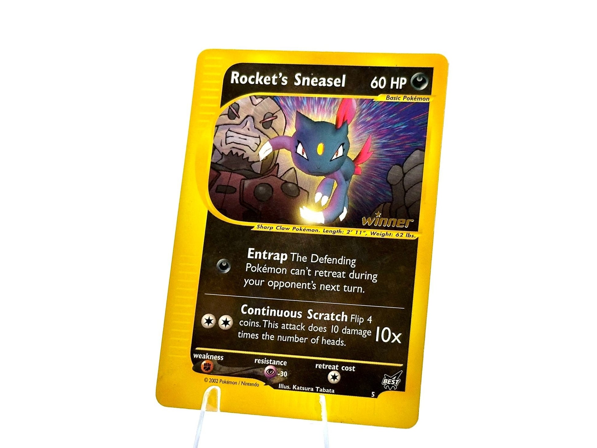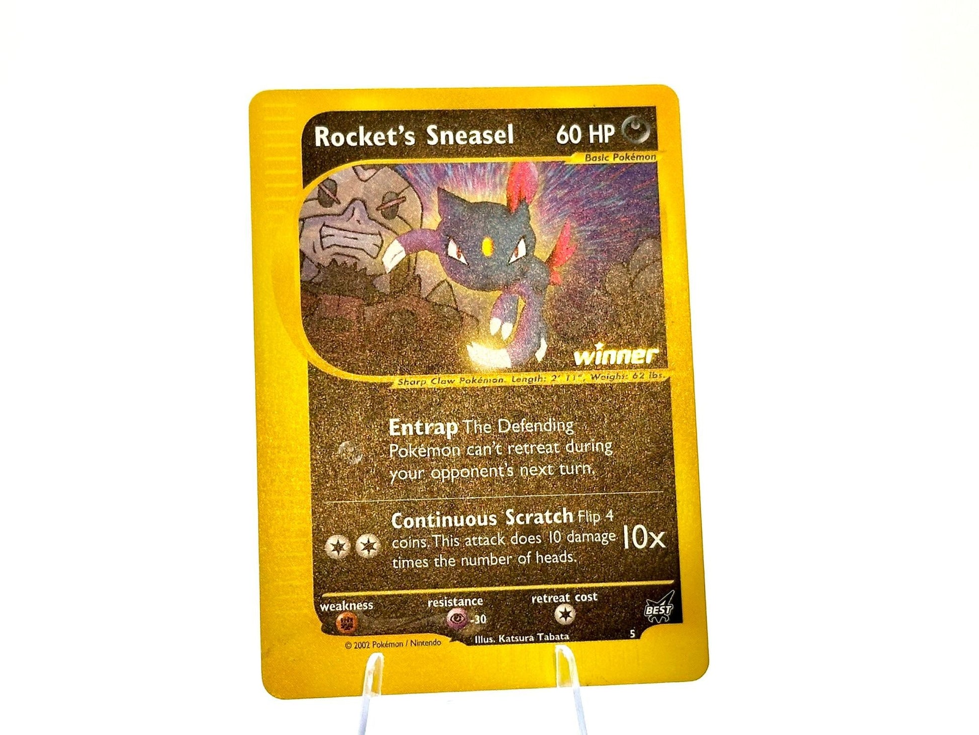Rocket’s Sneasel from the WINNER Best of Game 5/17 set. This card is from the WOTC era. Carefully protected during shipping. Authentic Pokémon card. Please check photos for condition.