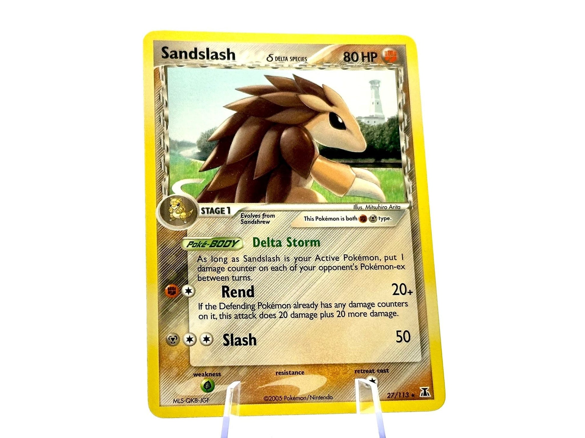 Sandslash from the Delta Species [27/113] set. This card is from the 2005 MidEra Delta Species era. Carefully protected during shipping. Authentic Pokémon card. Please check photos for condition.