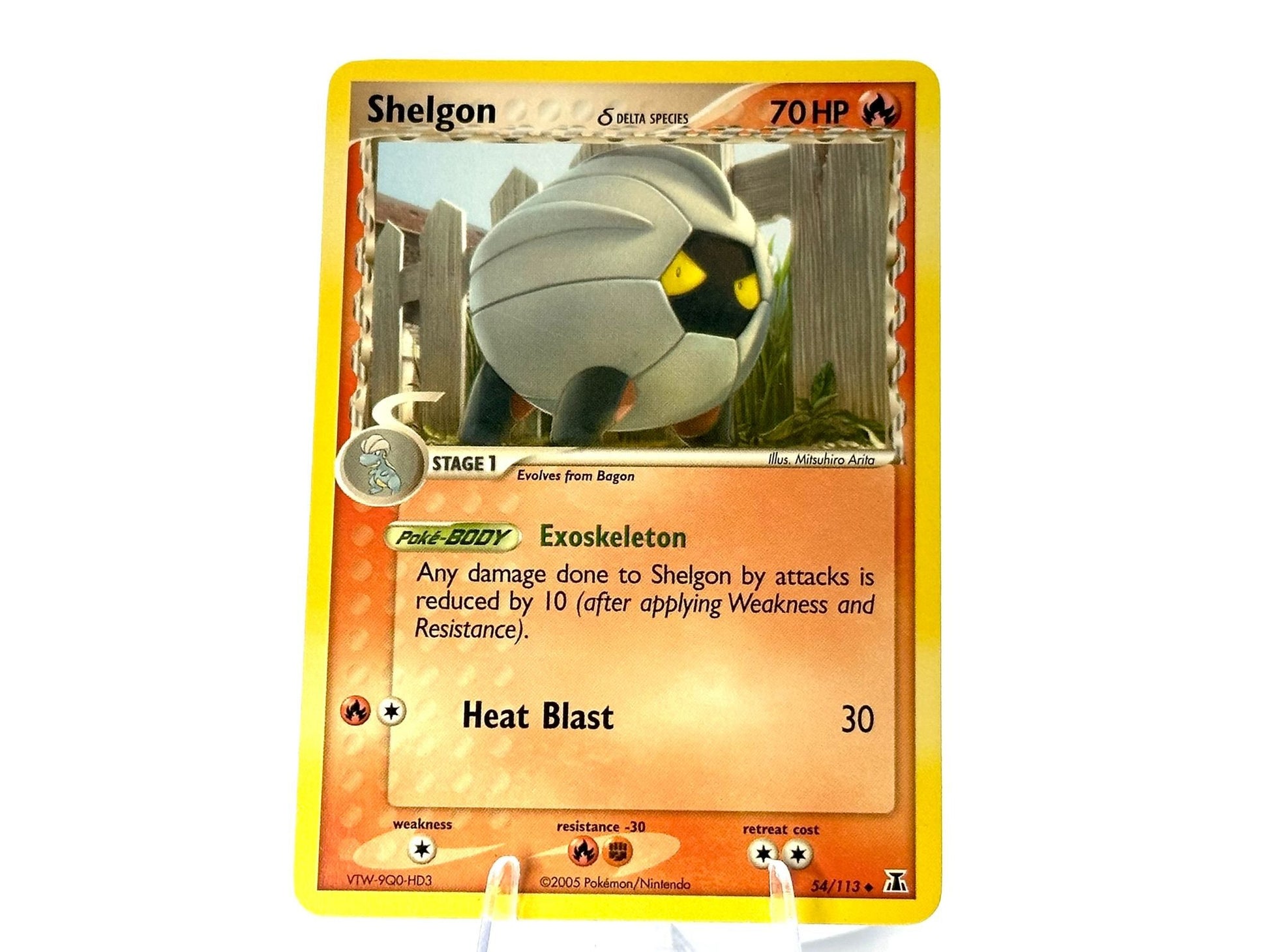 Shelgon from the EX Delta Species [54/113] set. This card is from the 2005 MidEra era. Carefully protected during shipping. Authentic Pokémon card. Please check photos for condition.
