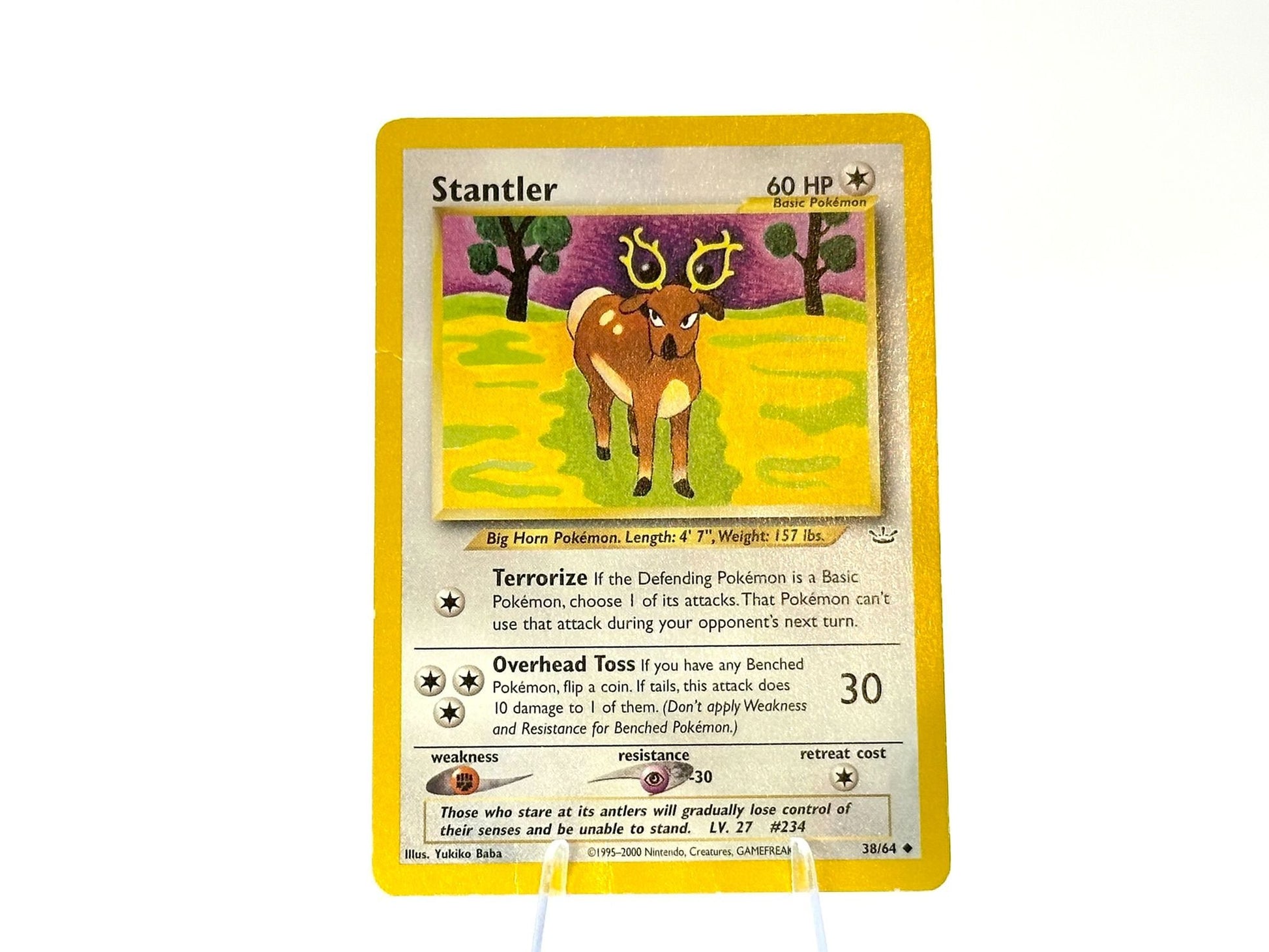 Stantler from the Neo Revelation [38/64] set. This card is from the 2001 WOTC era. Carefully protected during shipping. Authentic Pokémon card. Please check photos for condition.