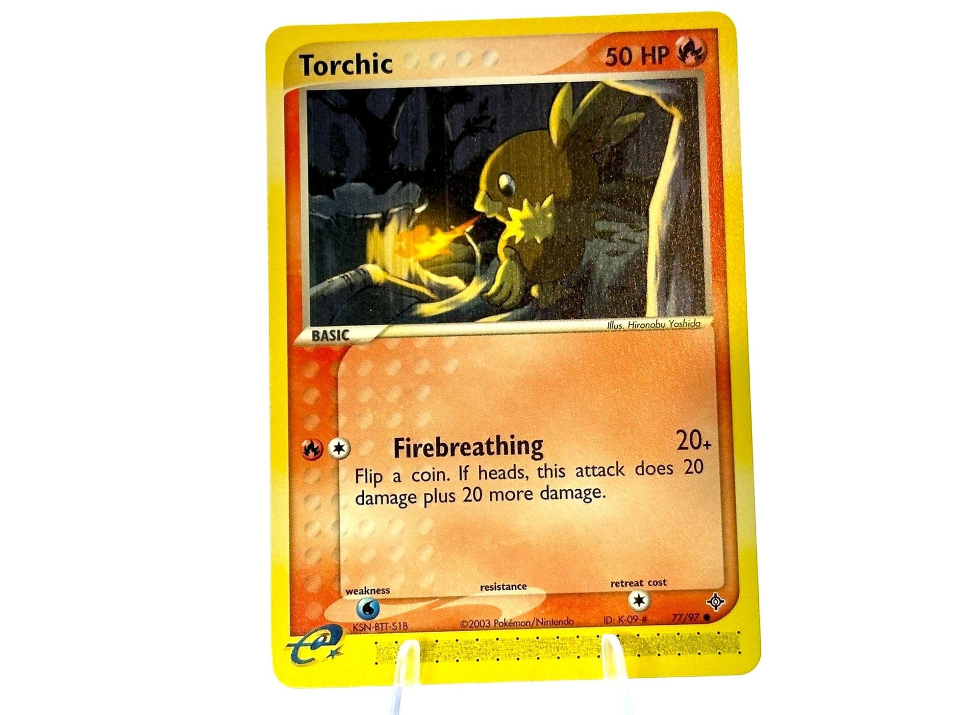 Torchic from the EX Dragon [77/97] set. This card is from the 2003 MidEra era. Carefully protected during shipping. Authentic Pokémon card. Please check photos for condition.