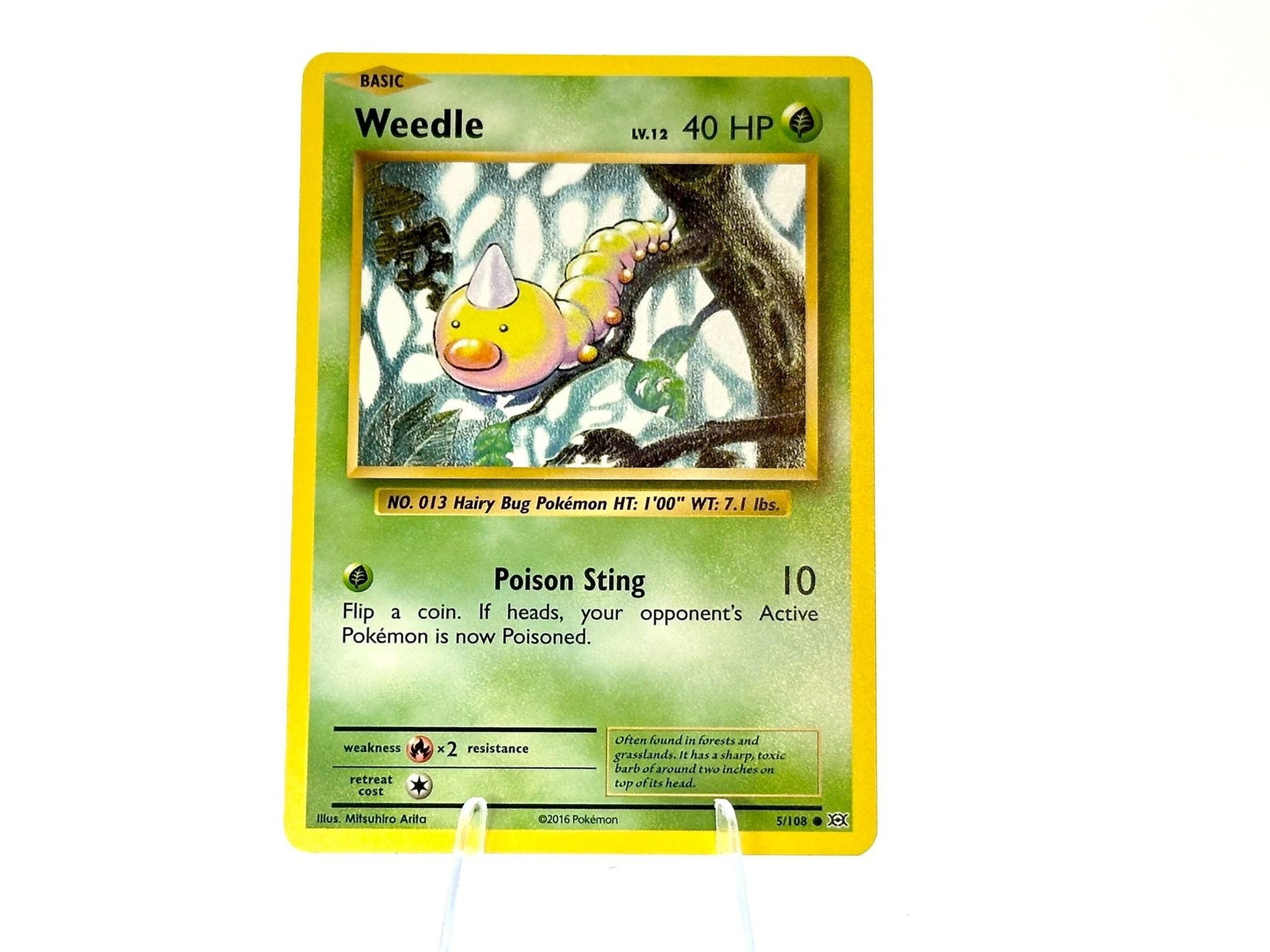Weedle from the Evolutions 5/108 set. This card is from the 2016 Modern era. Carefully protected during shipping. Authentic Pokémon card. Please check photos for condition.