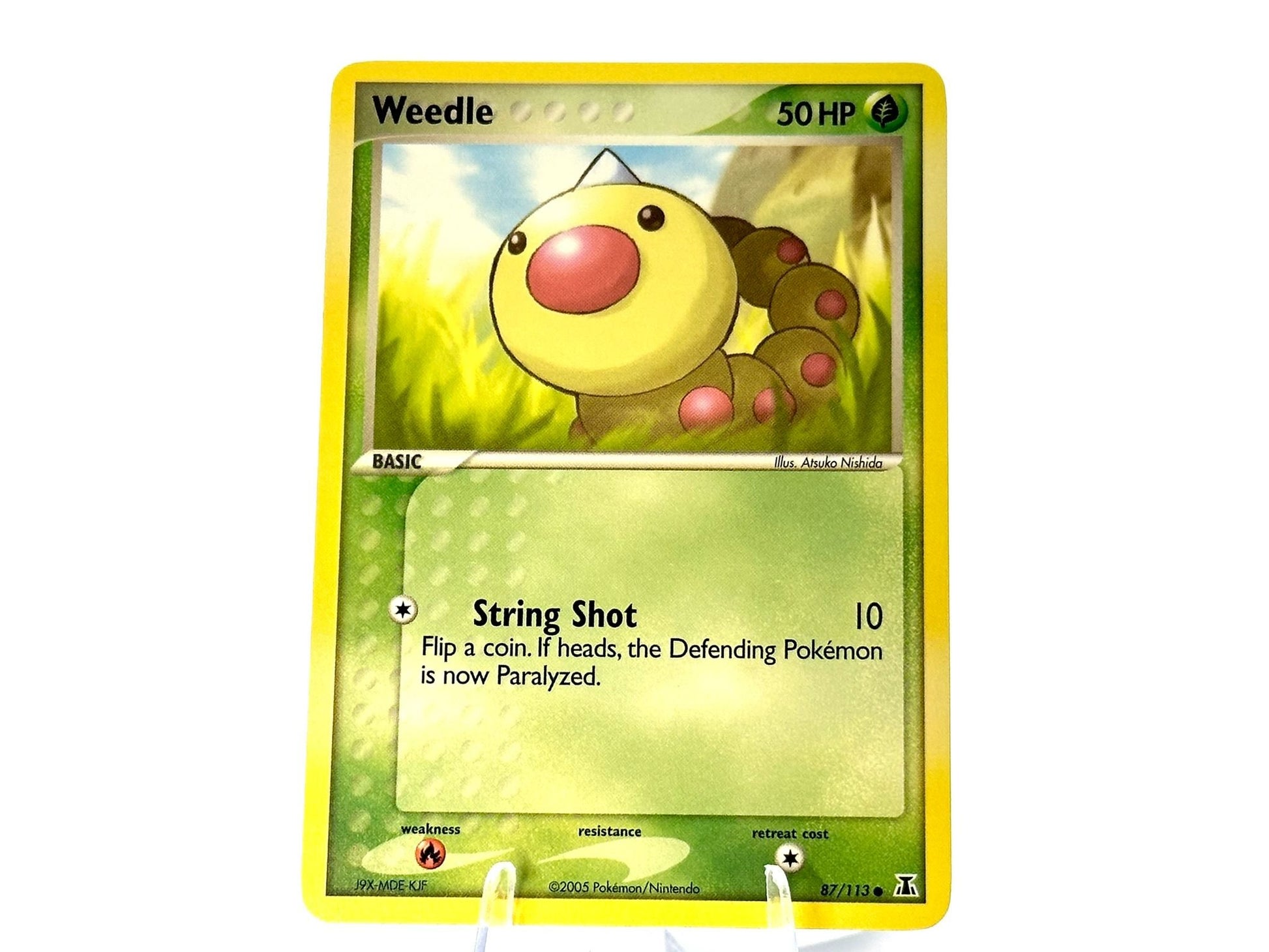 Weedle from the EX Delta Species [87/113] set. This card is from the 2005 MidEra era. Carefully protected during shipping. Authentic Pokémon card. Please check photos for condition.