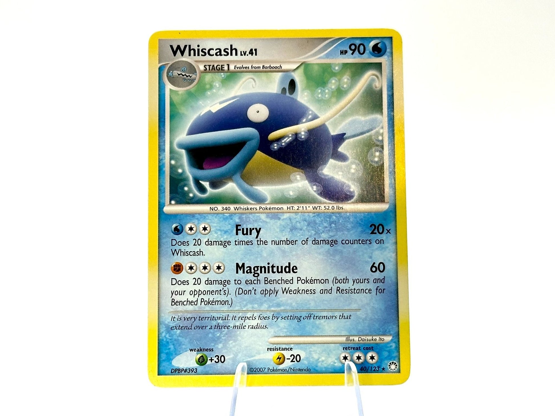 Whiscash from the Mysterious Treasures [40/123] set. This card is from the 2007 MidEra era. Carefully protected during shipping. Authentic Pokémon card. Please check photos for condition.