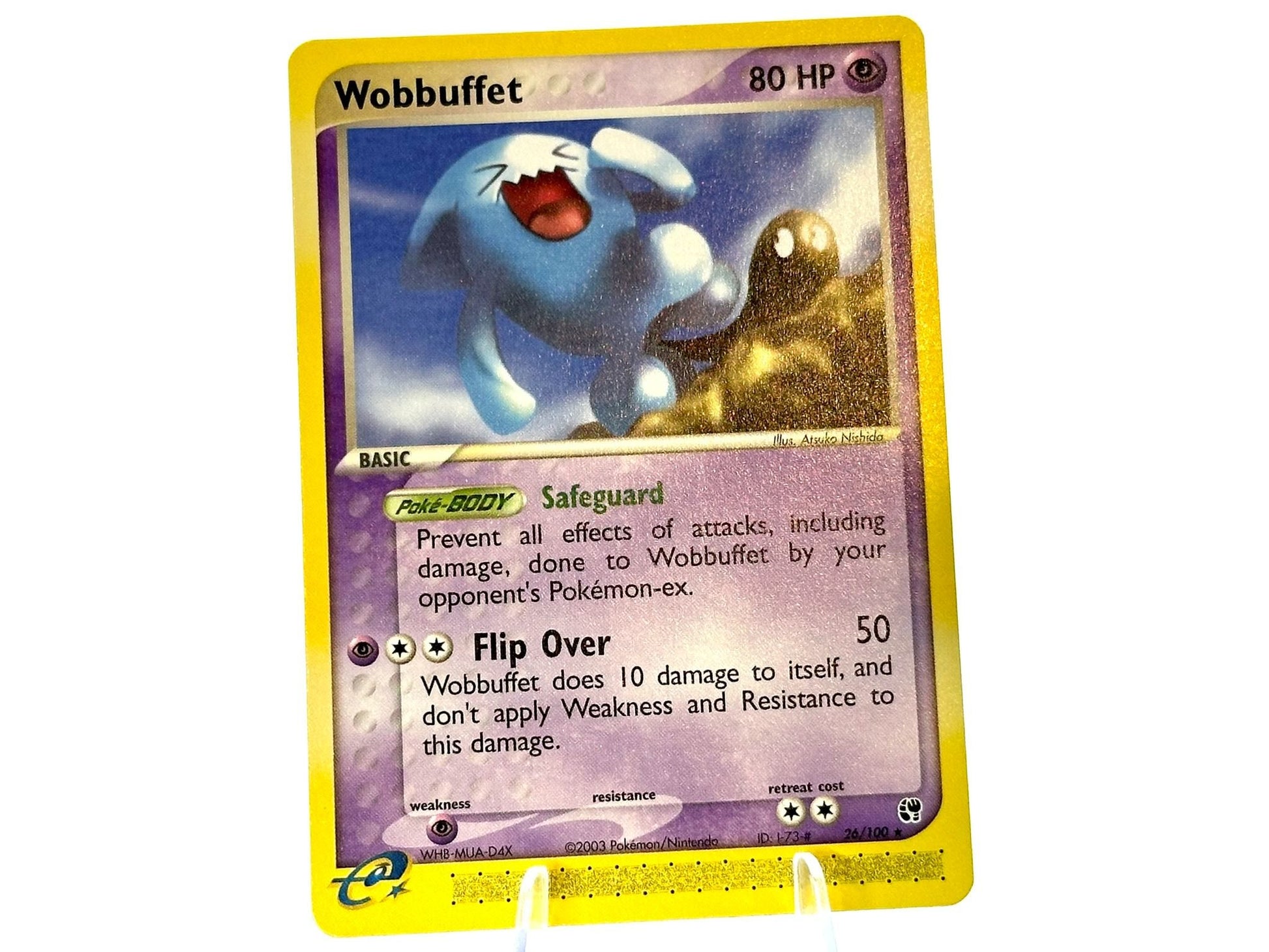Wobbuffet from the EX Sandstorm [26/100] set. This card is from the 2003 MidEra era. Carefully protected during shipping. Authentic Pokémon card. Please check photos for condition.