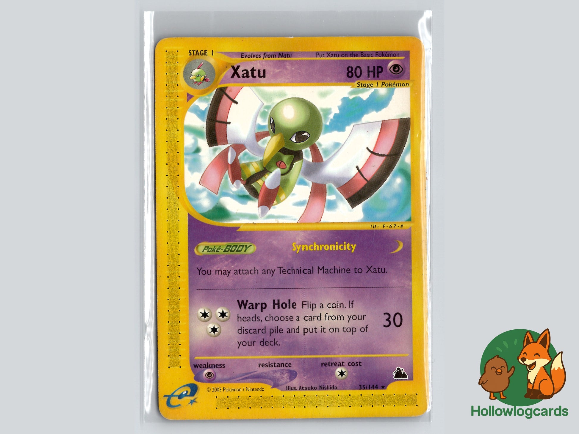 Xatu from the Skyridge [55/144] set. This card is from the 2003 WOTC era. Carefully protected during shipping. Authentic Pokemon card. Please check photos for condition.
